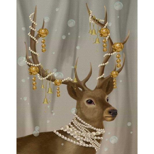 Deer with Gold Bells Black Modern Wood Framed Art Print with Double Matting by Fab Funky