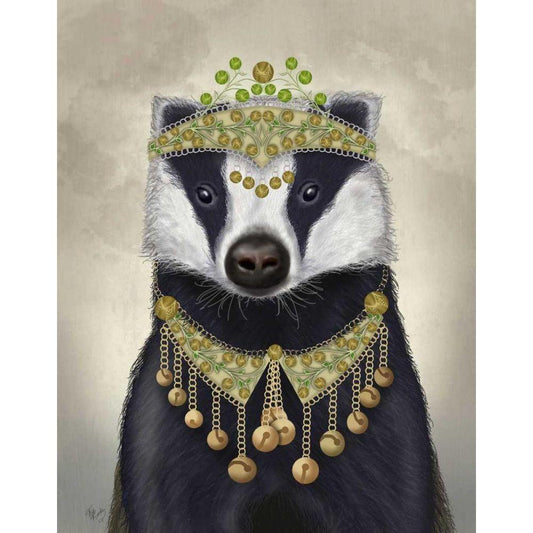 Badger with Tiara, Portrait Black Modern Wood Framed Art Print with Double Matting by Fab Funky