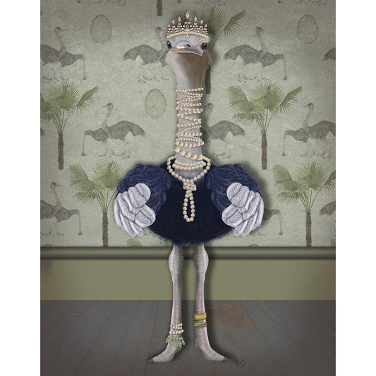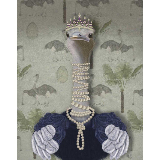 Ostrich and Pearls, Portrait Black Modern Wood Framed Art Print with Double Matting by Fab Funky