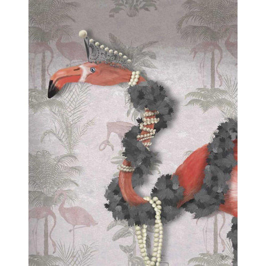 Flamingo and Pearls, Portrait Black Modern Wood Framed Art Print with Double Matting by Fab Funky