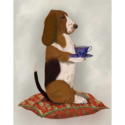Basset Hound Taking Tea Black Modern Wood Framed Art Print with Double Matting by Fab Funky