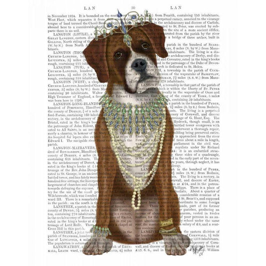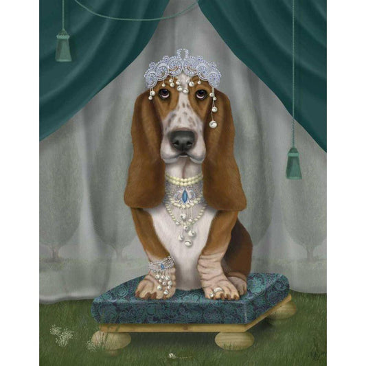 Basset Hound and Tiara Black Modern Wood Framed Art Print with Double Matting by Fab Funky