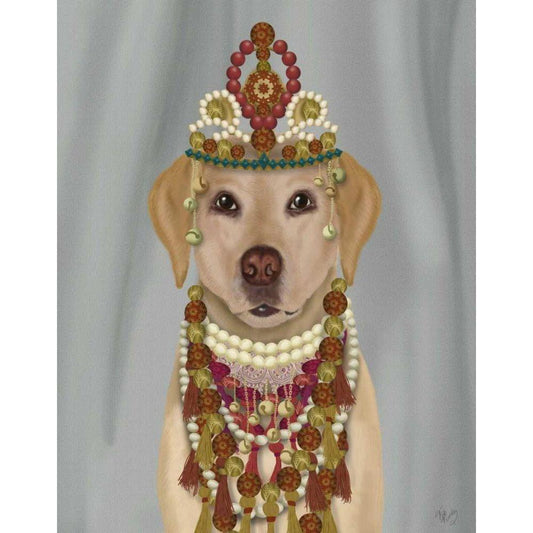 Yellow Labrador and Tiara, Portrait Black Modern Wood Framed Art Print with Double Matting by Fab Funky