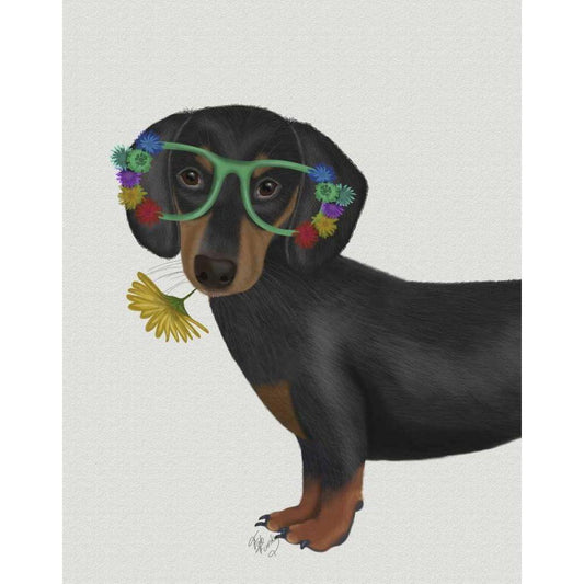 Dachshund Flower Glasses Black Modern Wood Framed Art Print with Double Matting by Fab Funky