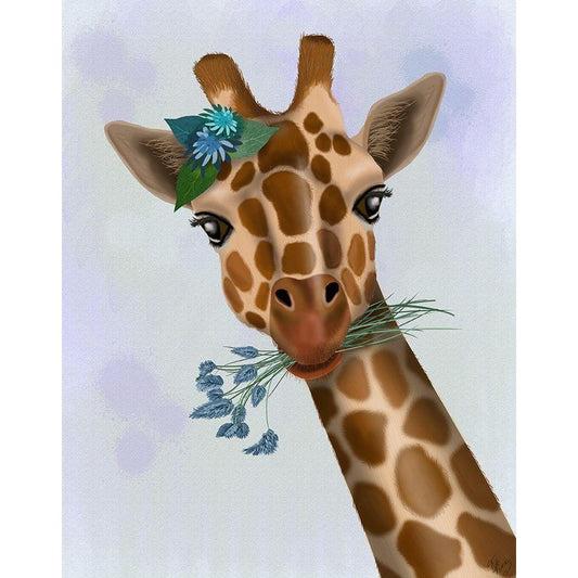 Giraffe and Flower Glasses 1 Black Modern Wood Framed Art Print with Double Matting by Fab Funky