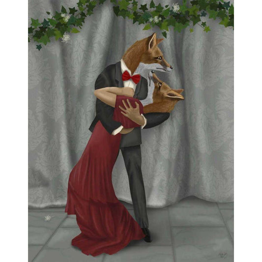Foxes Romantic Dancers Black Modern Wood Framed Art Print with Double Matting by Fab Funky