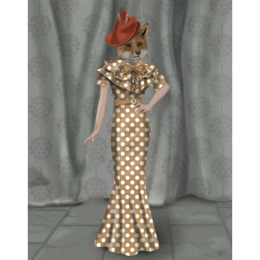 Fox Lady 1930s Black Modern Wood Framed Art Print with Double Matting by Fab Funky