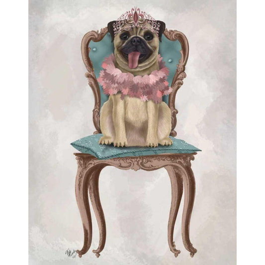 Pug Princess on Chair Black Modern Wood Framed Art Print with Double Matting by Fab Funky