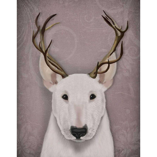 Bull Terrier and Antlers Black Modern Wood Framed Art Print with Double Matting by Fab Funky