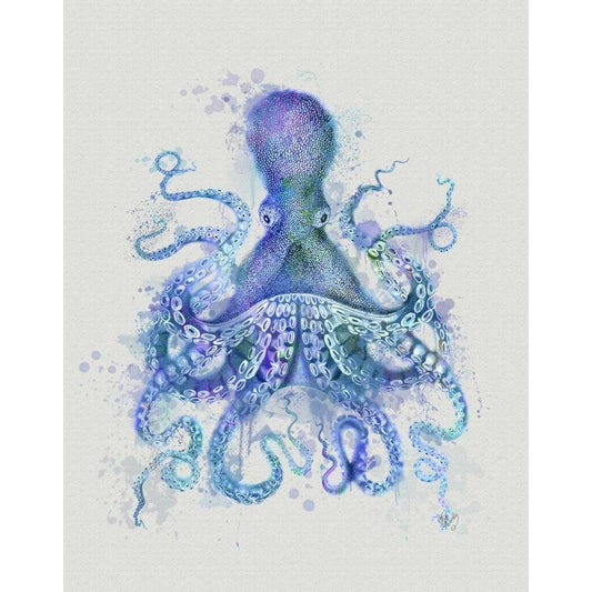 Octopus Rainbow Splash Blue Black Modern Wood Framed Art Print with Double Matting by Fab Funky