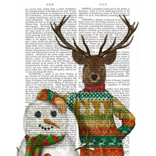 Deer in Christmas Sweater with Snowman Black Modern Wood Framed Art Print with Double Matting by Fab Funky