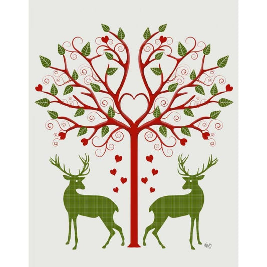 Christmas Des - Deer and Heart Tree, On Cream Black Modern Wood Framed Art Print with Double Matting by Fab Funky