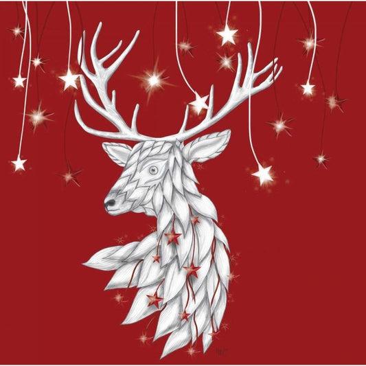 White Deer and Hanging Stars Black Modern Wood Framed Art Print with Double Matting by Fab Funky