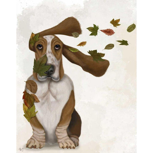 Basset Hound Windswept and Interesting Black Modern Wood Framed Art Print with Double Matting by Fab Funky