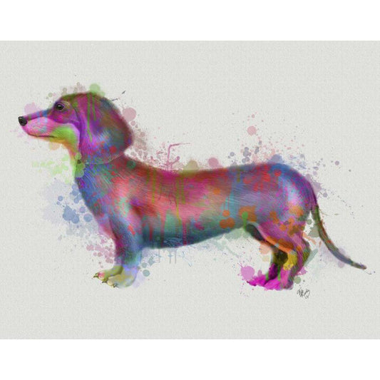 Dachshund Rainbow Splash 1 Black Modern Wood Framed Art Print with Double Matting by Fab Funky