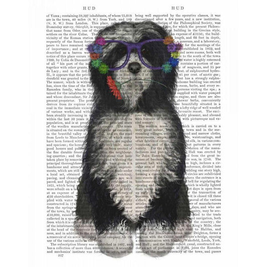 Tibetan Terrier Rainbow Splash Black Modern Wood Framed Art Print with Double Matting by Fab Funky