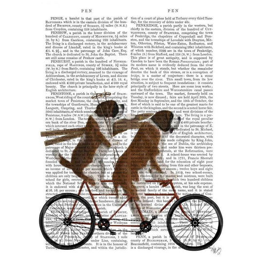 Poodle on Bicycle, Black Black Modern Wood Framed Art Print with Double Matting by Fab Funky