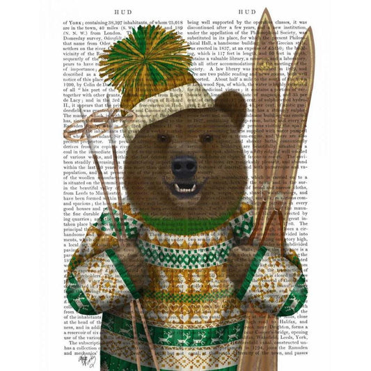 Bear in Christmas Sweater Black Modern Wood Framed Art Print with Double Matting by Fab Funky