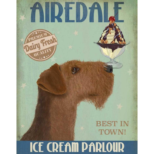 Airedale Ice Cream Black Modern Wood Framed Art Print with Double Matting by Fab Funky