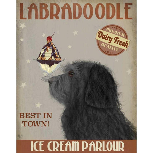 Labradoodle, Black, Ice Cream Black Modern Wood Framed Art Print with Double Matting by Fab Funky