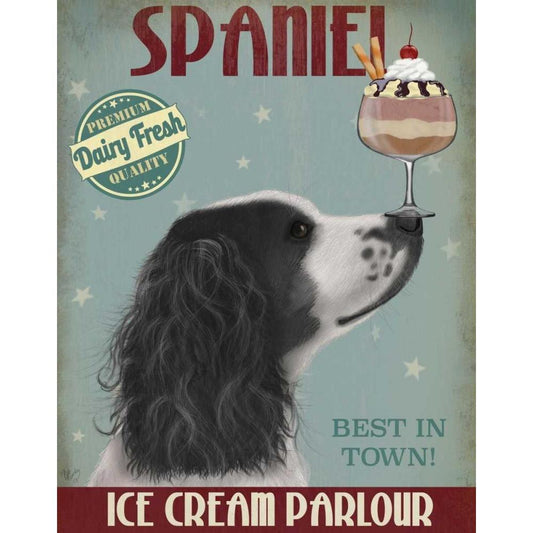 Springer Spaniel, Black and White, Ice Cream Black Modern Wood Framed Art Print with Double Matting by Fab Funky