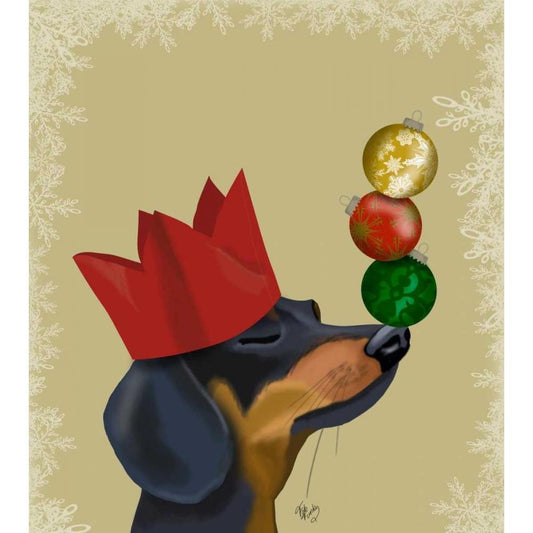 Dachshund, Party Trick Baubles Black Modern Wood Framed Art Print with Double Matting by Fab Funky