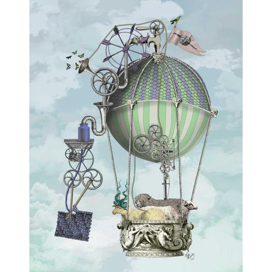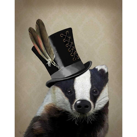 Steampunk Badger in Top Hat Black Modern Wood Framed Art Print with Double Matting by Fab Funky