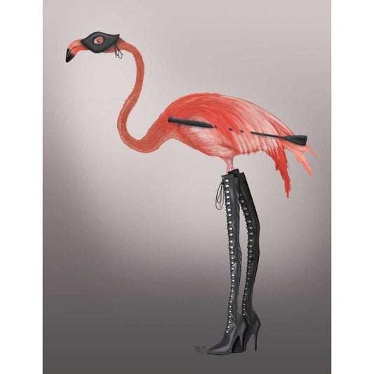 Flamingo with Kinky Boots Black Modern Wood Framed Art Print with Double Matting by Fab Funky