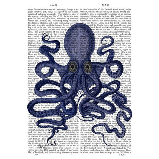 Octopus 9, Blue Black Modern Wood Framed Art Print with Double Matting by Fab Funky