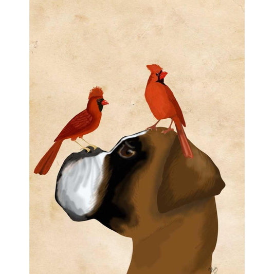 Boxer and Red Cardinals Black Modern Wood Framed Art Print with Double Matting by Fab Funky