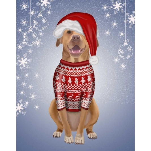 Pitbull in Christmas Sweater Black Modern Wood Framed Art Print with Double Matting by Fab Funky