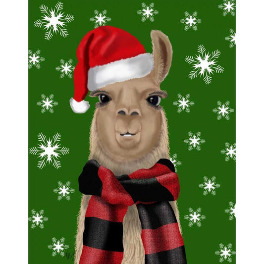 Llama, Christmas Hat Black Modern Wood Framed Art Print with Double Matting by Fab Funky