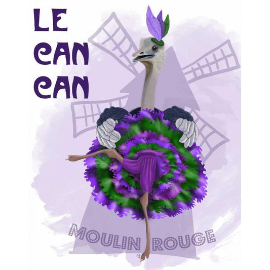 Ostrich, Can Can in Purple and Green Black Modern Wood Framed Art Print with Double Matting by Fab Funky