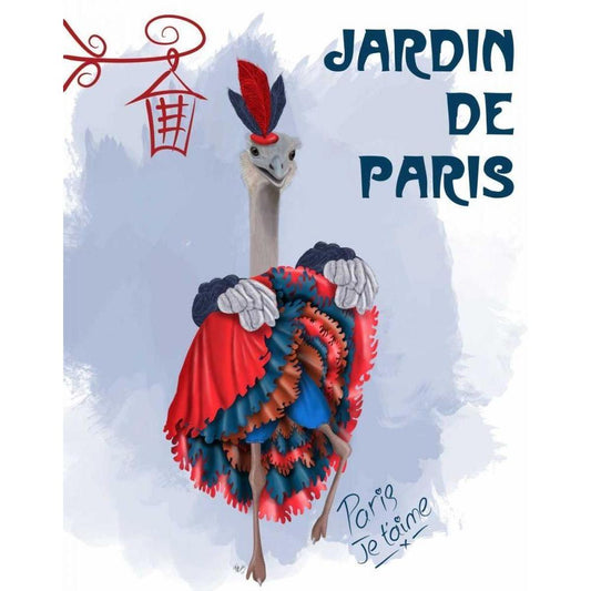 Ostrich, Can Can in Red and Blue Black Modern Wood Framed Art Print with Double Matting by Fab Funky