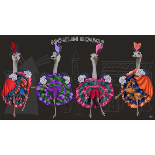 Ostrich, Can Can Troupe Black Modern Wood Framed Art Print with Double Matting by Fab Funky