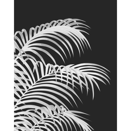 Palm Leaf 1, White On Black Black Modern Wood Framed Art Print with Double Matting by Fab Funky