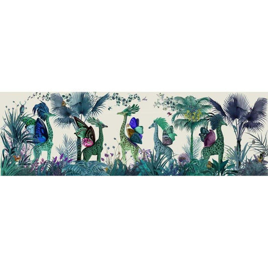 Tropical Giraffes, Blue Black Modern Wood Framed Art Print with Double Matting by Fab Funky