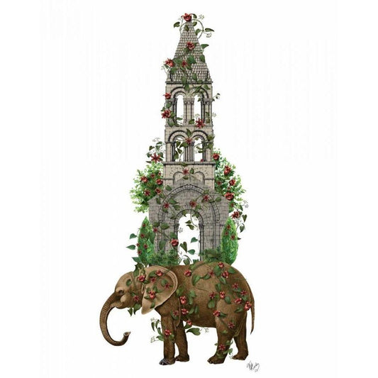 Elephant Tower Black Modern Wood Framed Art Print with Double Matting by Fab Funky