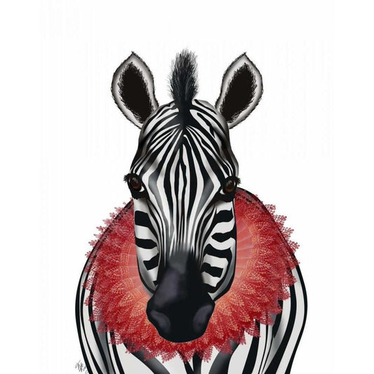 Zebra and Red Ruff Black Modern Wood Framed Art Print with Double Matting by Fab Funky