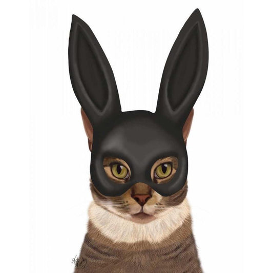 Cat with Bunny Mask Black Modern Wood Framed Art Print with Double Matting by Fab Funky