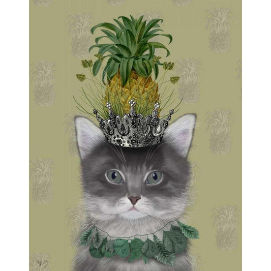 Cat, Pineapple Puss Black Modern Wood Framed Art Print with Double Matting by Fab Funky
