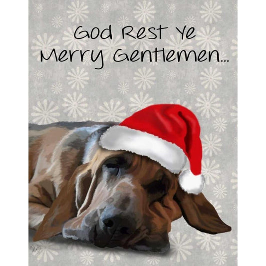 God Rest Ye Bloodhound Black Modern Wood Framed Art Print with Double Matting by Fab Funky