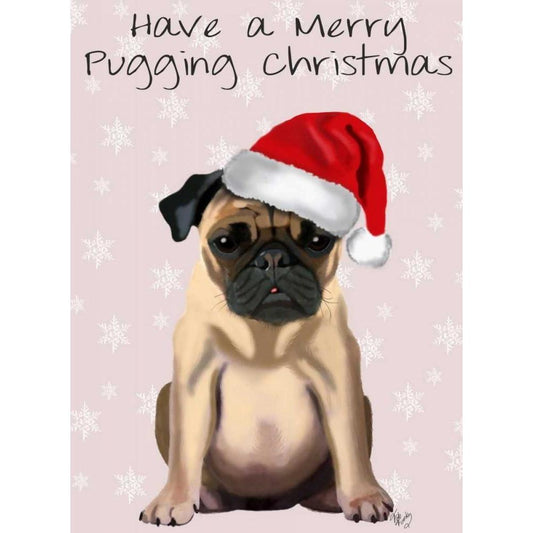 Merry Pugging Christmas Black Modern Wood Framed Art Print with Double Matting by Fab Funky