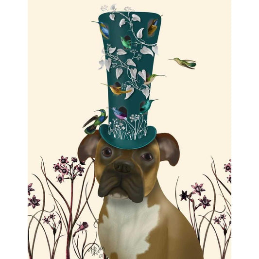 Boxer and Bird Hat Black Modern Wood Framed Art Print with Double Matting by Fab Funky