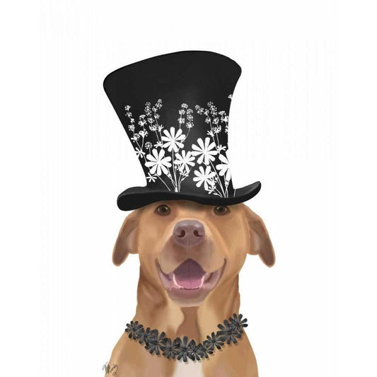Pit Bull with Black Hat Black Modern Wood Framed Art Print with Double Matting by Fab Funky