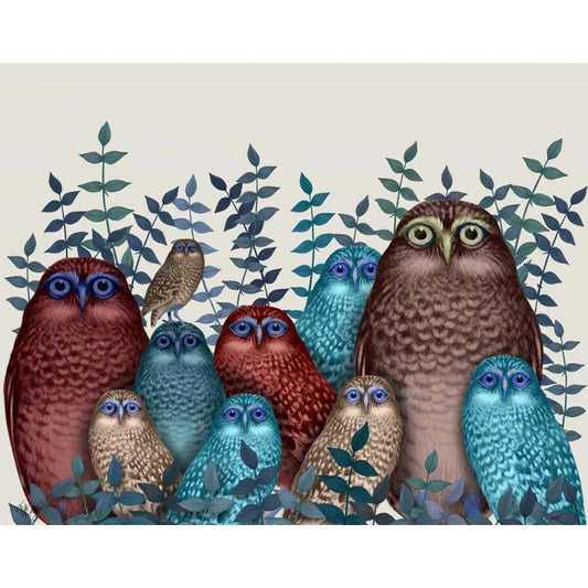 Electric Owls, Red and Blue Black Modern Wood Framed Art Print with Double Matting by Fab Funky