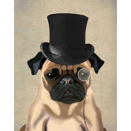 Pug, Formal Hound and Hat Black Modern Wood Framed Art Print with Double Matting by Fab Funky