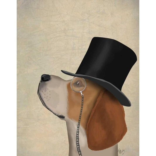 Beagle, Formal Hound and Hat Black Modern Wood Framed Art Print with Double Matting by Fab Funky