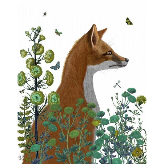 Fox In the Garden Black Modern Wood Framed Art Print with Double Matting by Fab Funky