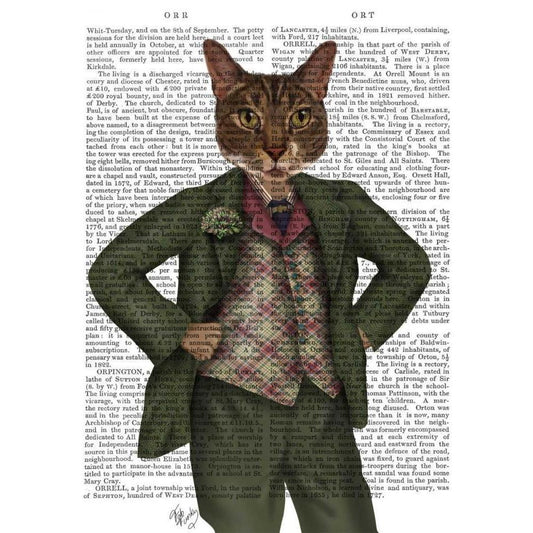 Cat in Tartan Waistcoat Black Modern Wood Framed Art Print with Double Matting by Fab FunkyRegular price From $39.99 USDRegular priceUnit price per-